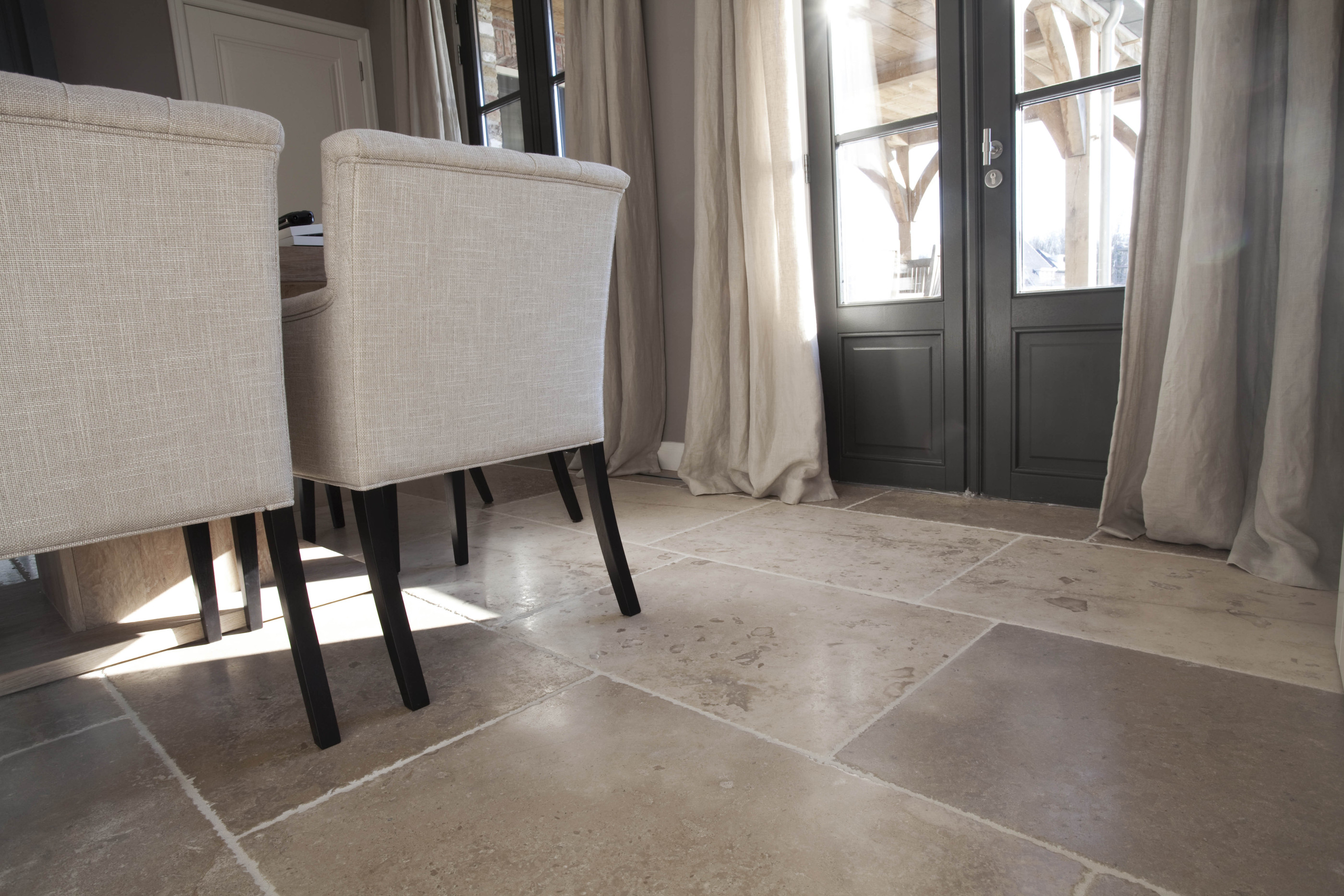 Een prachtige vloer van Bourgondische dallen. De mooie kleurschakering en authentieke uitstraling zorgt ervoor dat uw vloer sfeervol en tijdloos is en blijft.